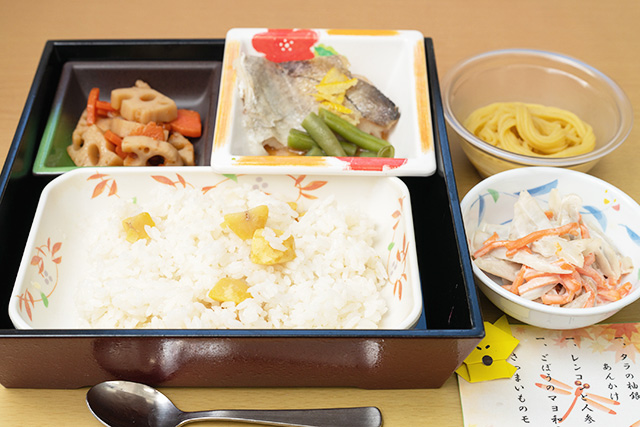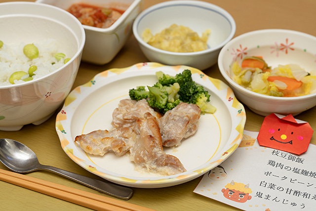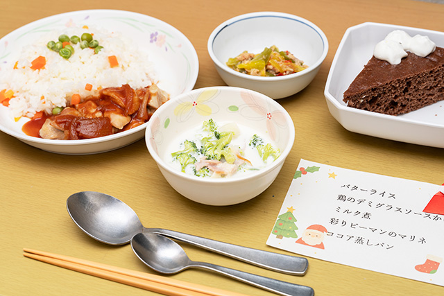 入院時にご用意いただくもの 1.健康保険被保険者証、当院の診察券(お持ちの方)、後期高齢者福祉医療費受給者証、限度額適用認定証、特定疾患医療受給者証、介護保険被保険者証など 2.退院証明書、処方された薬全て 3.日常着(上下、リハビリしやすいもの)、肌着、靴下、パジャマ、タオル、日用品(洗面用具など)※貸出し(有料)もあります。ご入院のお手続き時にご案内いたします。 4.下着類※おむつ・リハビリパンツ・尿取りパッド・おしりふき等については、ご入院のお手続き時に当院所定の物品(有料)をご案内いたします。 5.上着(羽織るもの) 6.室内用の靴(リハビリしやすいもの) 7.水筒などお茶をいれる容器 8.洗濯物を入れる袋やかご 寝具について 寝具は当院で用意し、シーツは定期的に交換致します。 所持品について 1.盗難防止のため、多額の現金・貴重品はできるだけお持ちにならないようお願いいたします。また、現金・貴重品の管理につきましては各自でお願いいたします。万が一盗難が発生しても当院では責任を負いかねます。床頭台に施錠できる引き出しがございますので、鍵の貸し出しが必要な方は病棟事務までお申し出ください。 2.電気製品を持ち込まれる場合は事前にご相談ください。また、持ち込まれた電気製品の破損・故障・盗難についても当院は責任を負いかねますので、あらかじめご了承ください。 3.持参されたお持ち物には、お名前をご記入ください。 4.病室のスペースは限られているため、必要以上の物品のお持ち込みはご遠慮ください。 食事について 配膳時間朝食昼食夕食 7:3012:0018:00 当院では、入院中のお食事を院内ですべて調理してご提供しています。また今年8月から「行事食」として、毎月特別なお食事のご提供が始まりました。入院患者様にとってより充実した入院生活を送っていただけるよう、食事面でも最大限のサポートを目指して日々努力しております。 食品衛生と健康管理のため、持ち込み食(差し入れ)は原則ご遠慮いただいております。差し入れを希望される場合は事前に病棟看護師または管理栄養士までお申し出ください。 行事食のご紹介 ▲ 節分(2026年2月) ▲ お正月(2026年1月) ▲ クリスマス(2025年12月) ▲ 味覚の秋(2025年11月) ▲ ハロウィン(2025年10月) ▲ 夏祭り(2025年8月) ▲ 七夕(2025年7月) ▲ こどもの日(2025年5月) ▲ お花見弁当(2024年3月) ▲ ひなまつり(2025年3月) 入浴について 看護師が体調を確認したうえで、週2回行います。 洗濯について ご家族にてお持ち帰りいただくか、病棟内の洗濯室をご利用いただくこともできます。(洗濯:200円/回、乾燥:100円/30分。洗剤は各自ご持参ください。)業者に洗濯を依頼(申し込み要・有料)することもできます。 病室について 病室は4人部屋、個室、特別室の3種類があります。 室料差額/日(税込)テレビ冷蔵庫洗面台家具トイレバスキッチン 特別室15,000円 個室8,000円-- 4人部屋1,000円--- 4人部屋----- ※テレビ・冷蔵庫をご利用の方は、設備費として500円(税込)/日を別途いただきます。ただし、個室・特別室は設備費が含まれた料金となります。 付き添いについて 付き添いは原則として必要ありません。ただし病状やその他のやむを得ない場合はこの限りではありません。患者様の安全確保のため付き添いをお願いすることがありますので、ご了承ください。 入院時食事療養標準負担額について 入院したときは、一部負担金のほかに下表の標準負担額を負担していただきます。 <療養病床以外の病床に入院する全年齢の患者> 70歳未満の者(後期高齢者医療を受ける者を除く)高齢医受給者後期高齢者4月1日〜 上位所得者「ア」「イ」一般「ウ」「エ」現役並一般(Ⅲ)510円(300円 ※1) 住民税非課税「オ」低所得(Ⅱ)240円 190円 低所得(Ⅰ)110円 ※1 指定難病患者及び小児慢性特定疾病児童については一食280円とする。 外出・外泊について 外出・外泊は在宅復帰の訓練の一環として、医師の指示に基づき計画的に行っております。患者様やご家族のご希望による外出・外泊につきましては、看護師までご相談ください。 他科受診について 原則として、当院入院中に、患者様が他の医療機関(岡崎市民病院、かかりつけ医、眼科、耳鼻科など)を受診されること、またはご家族が患者様の代わりに他の医療機関を受診することはできません。ただし、必要に応じて、他の医療機関へのご受診をご案内する場合があります。その場合は事前に医療機関同士で手続きを行います。他の医療機関でのご予約がある場合は、ご入院当日に必ず看護師までお申し出ください。 退院について 休診日及び時間外での退院は、原則としてご遠慮いただいております。退院の際は、退院までの入院費、その他の費用を1階会計にてお支払いください。 お支払い 長期入院の方の請求書は、1ヶ月分をまとめて翌月5日に発行しております。1階会計窓口にて請求書をお受け取りいただき、翌月15日までにお支払いをお願いいたします。お支払いは現金のみでのお取り扱いとなっており